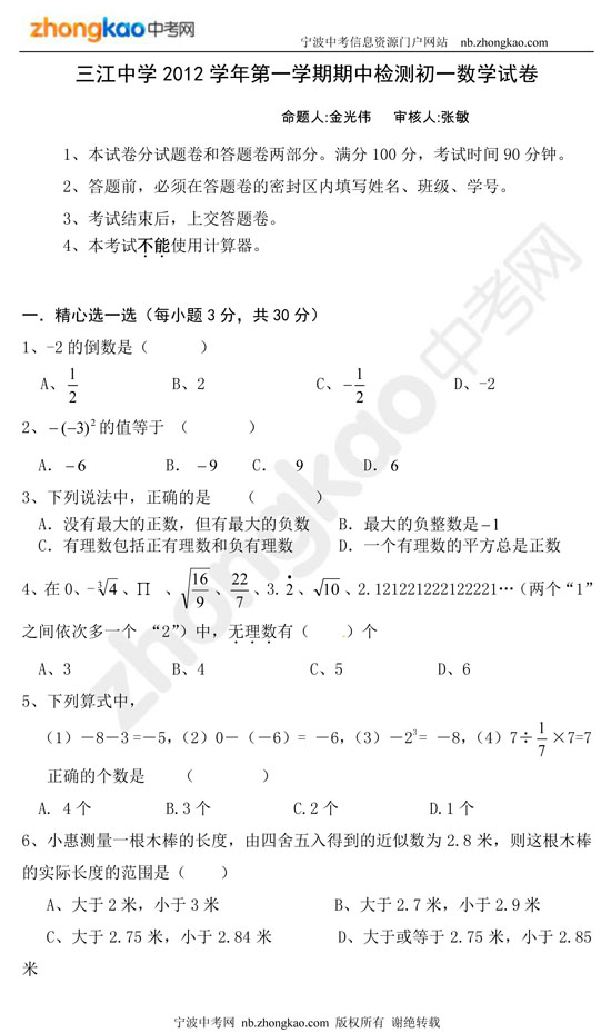 宁波中考网讯 期中考试是对学生的一次检阅,老师能很好的了解学生对所学知识点的接受和消化程度!而作为初一学生,基础不扎实,对之后中考复习有很大的影响。宁波中考网小编特整理了宁波大市范围内各初中的期中试题,供大家参考!