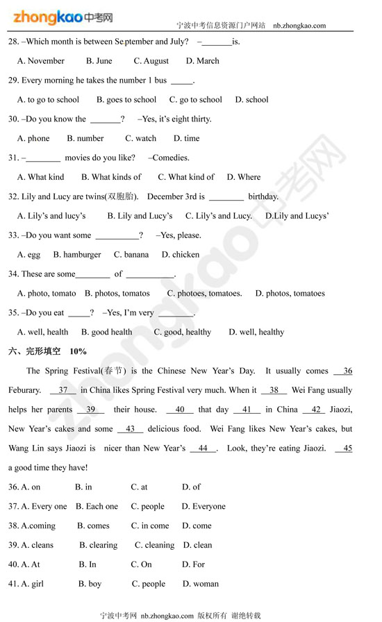 宁波市江东区2009学年度第一学期初一英语期末试题(3)