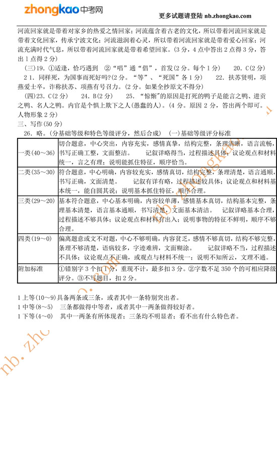 2009年浙江省宁波市语文中考试题答案(2)