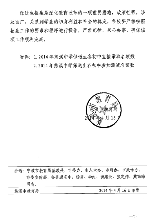 2014年慈溪中学保送生政策独家正式公布(5)