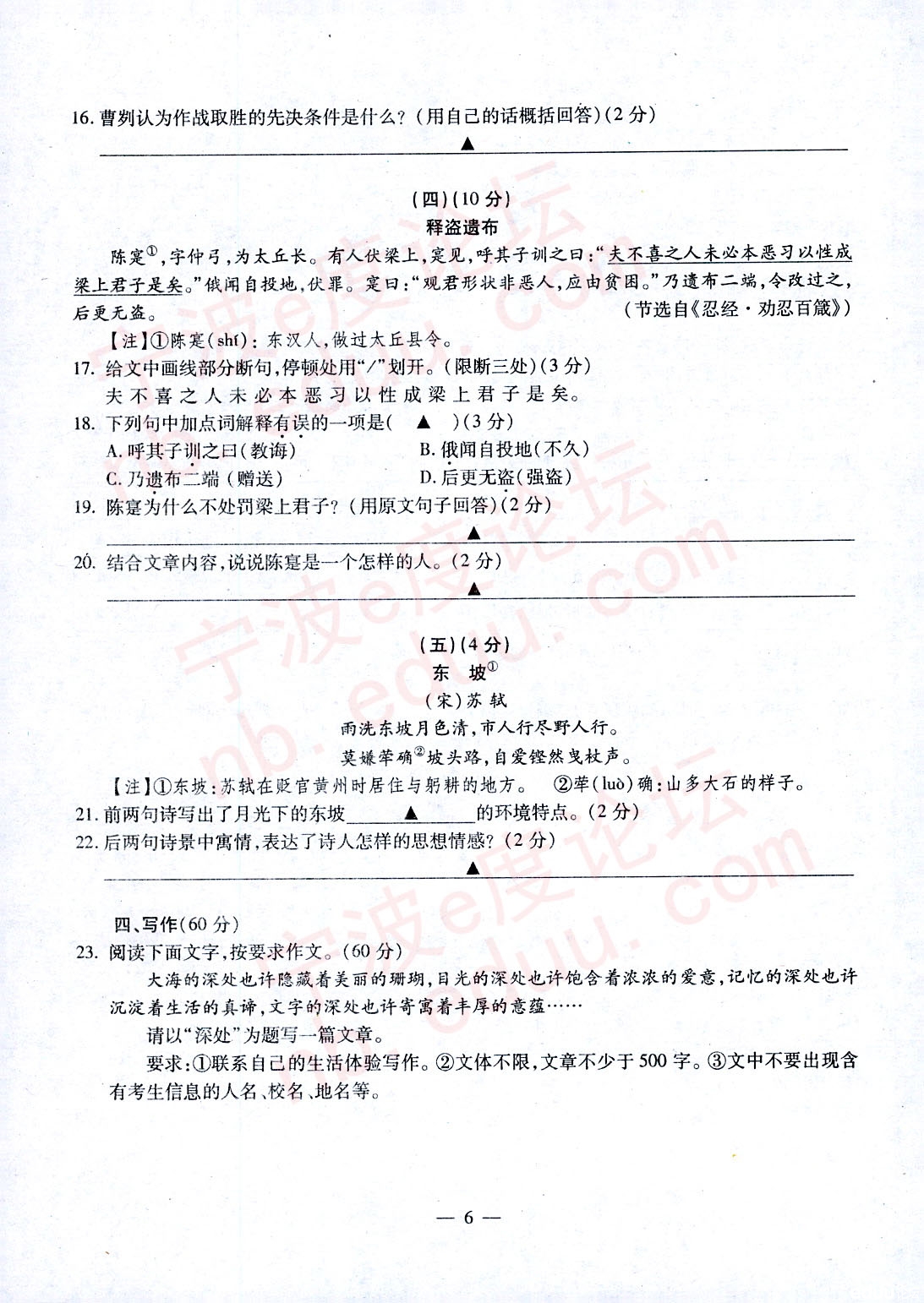 【查看原帖并参与讨论:2014年宁波中考语文试题及答案(扫描版,可直接打印?