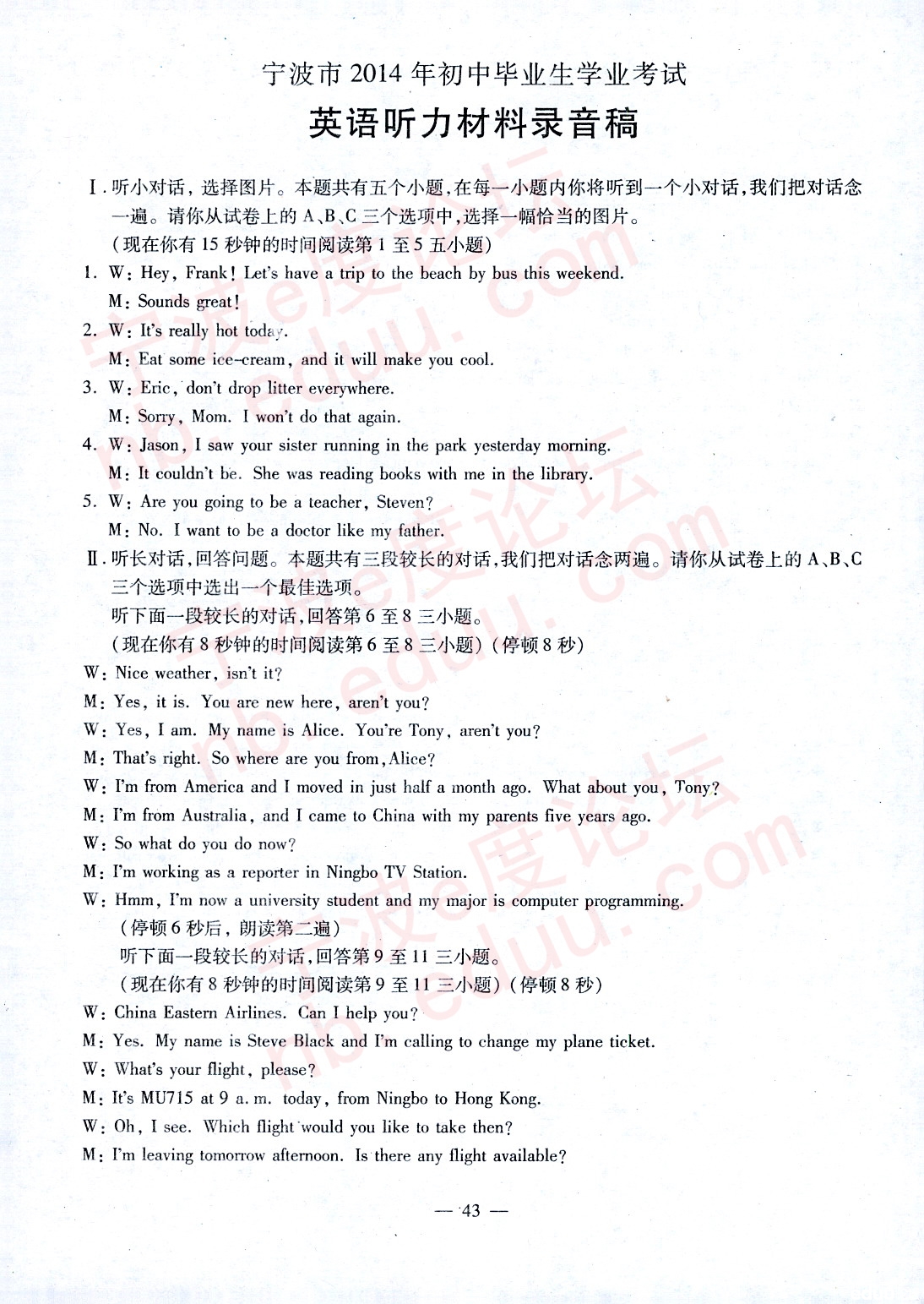 2014年宁波中考英语试题及答案(扫描版,可直接打印,含听力材料)(11)