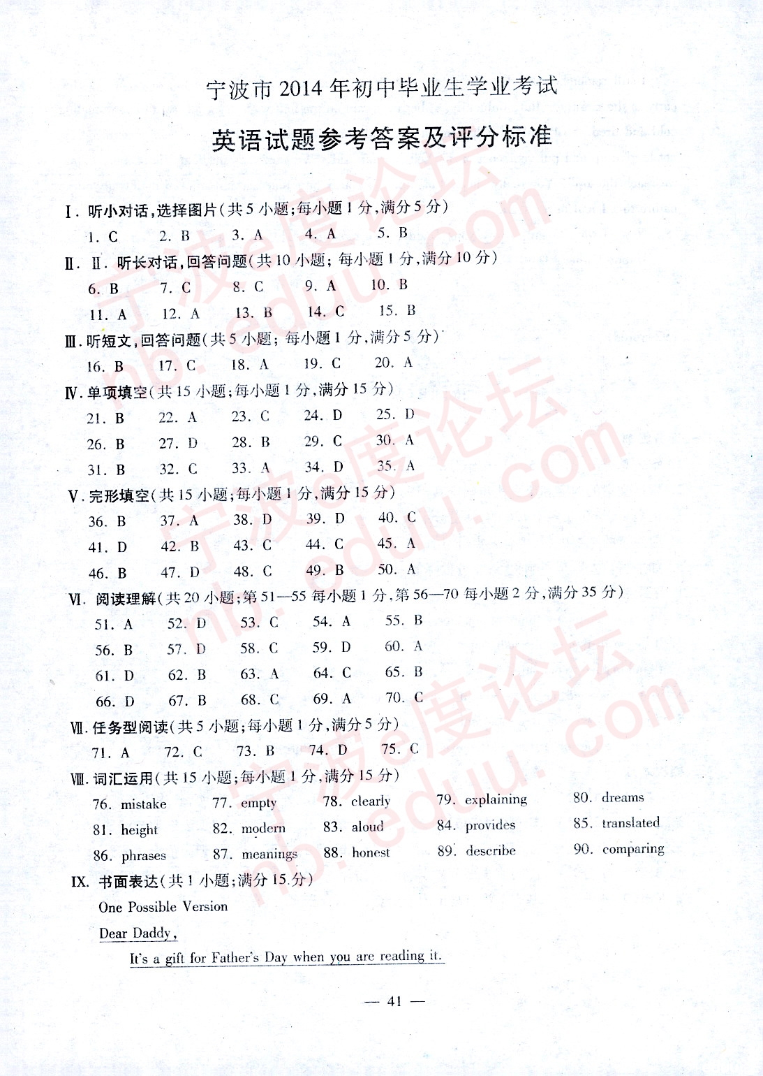 2014年宁波中考英语试题及答案(扫描版,可直接打印,含听力材料)(9)
