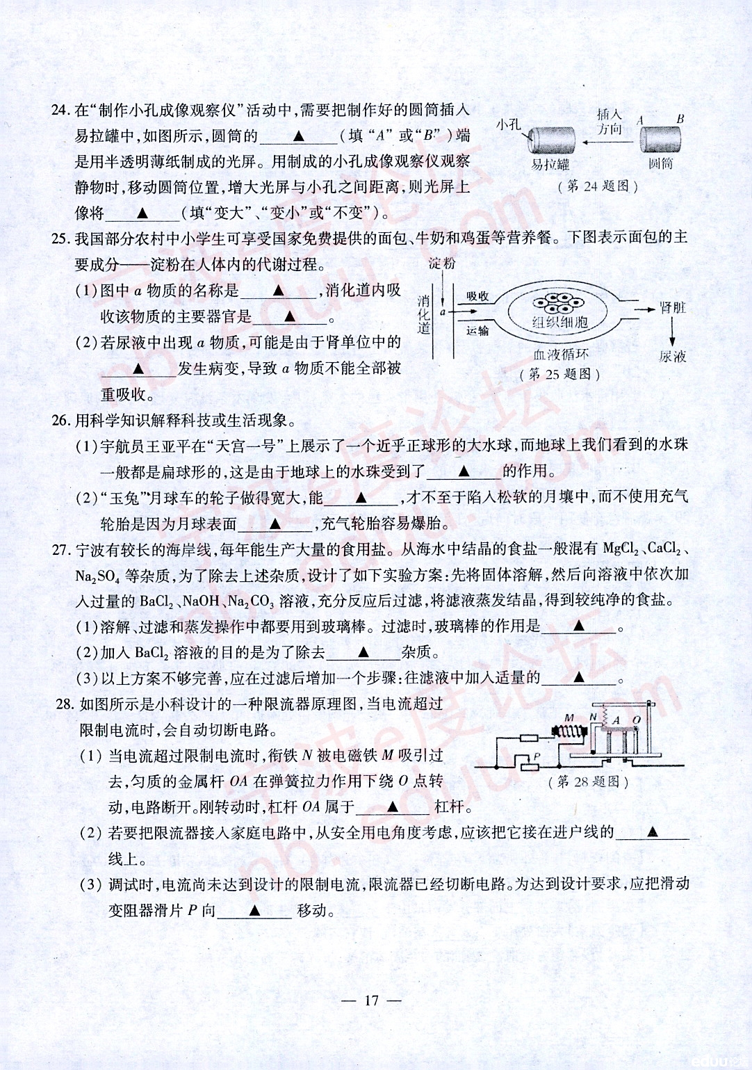 2014年宁波中考科学试题及答案(扫描版,可直接打印)(5)