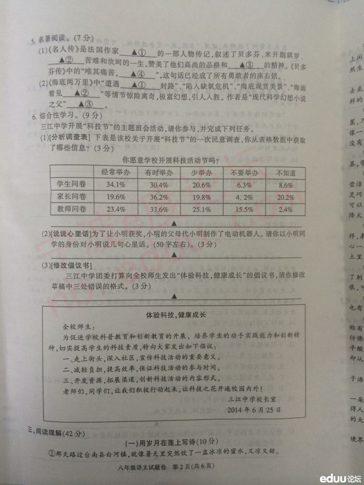 慈溪市2013学年第二学期八年级期末语文试卷(含答案)(2)