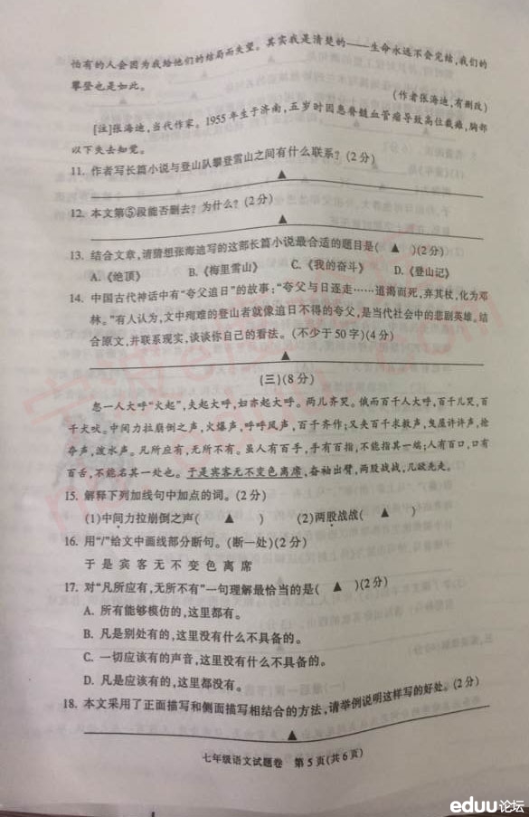 慈溪市2013学年第二学期七年级期末语文试卷(含答案)(5)