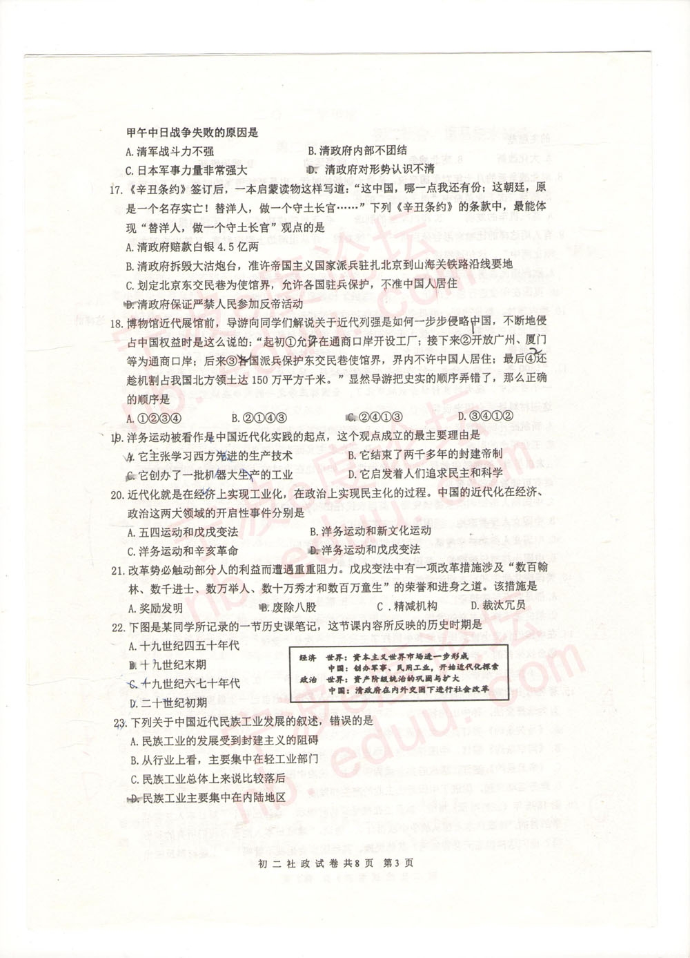 宁外2013学年度第二学期初二社会、思品期末试卷(含参考答案)(3)