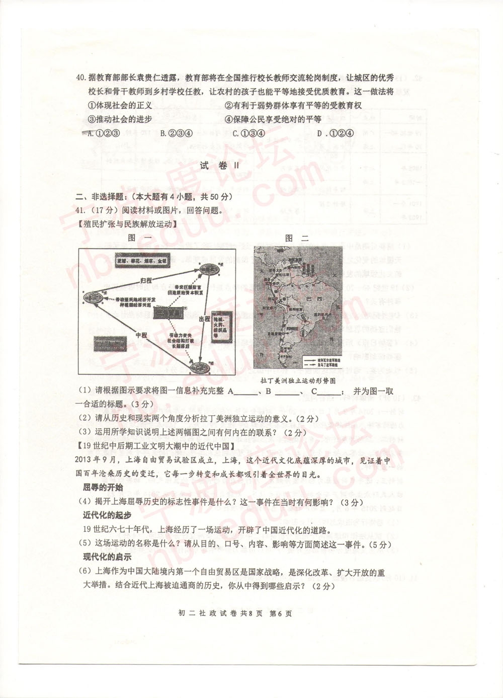 宁外2013学年度第二学期初二社会、思品期末试卷(含参考答案)(6)