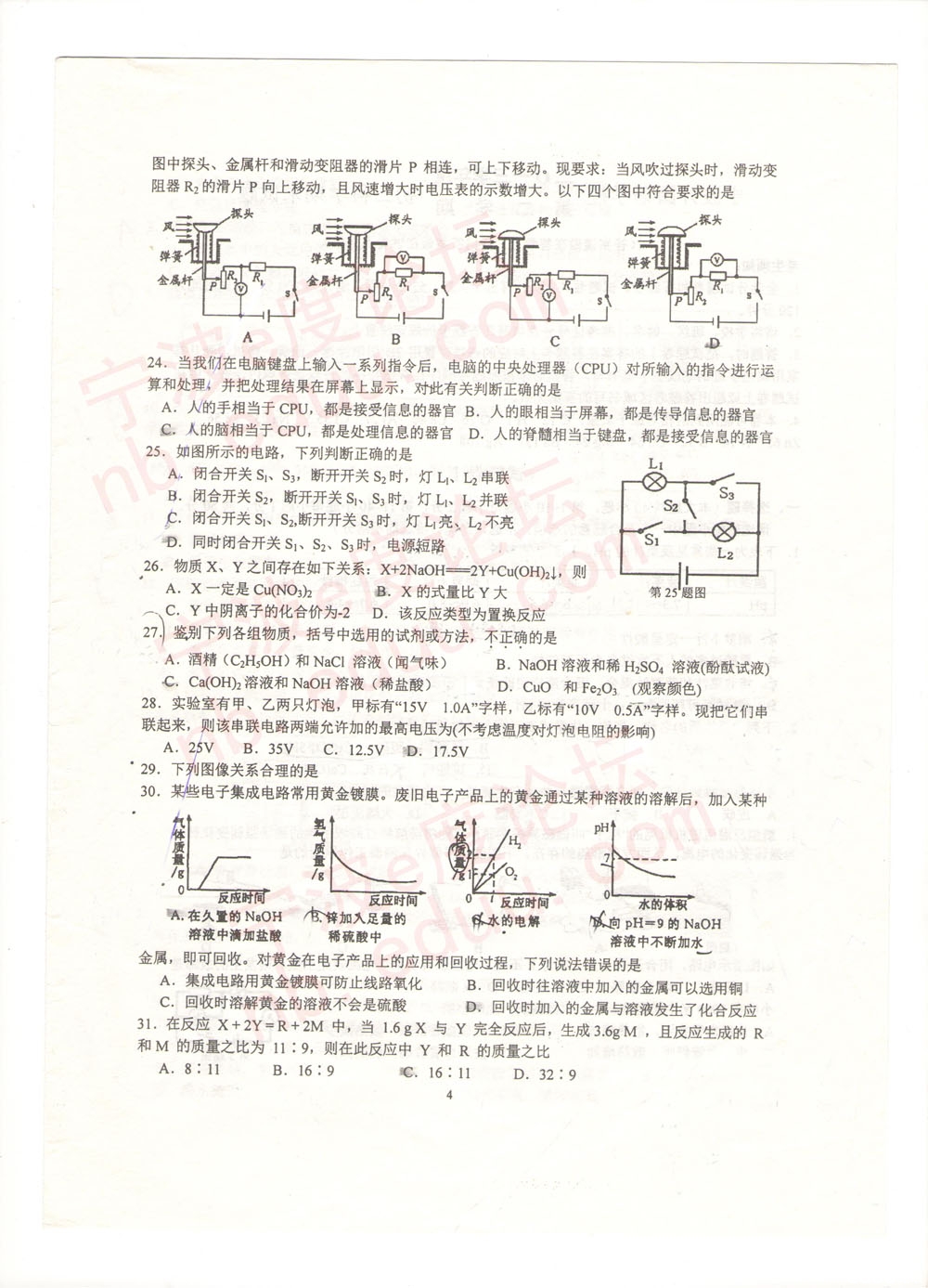 宁外2013学年度第二学期初二科学期末试卷(含参考答案)(4)