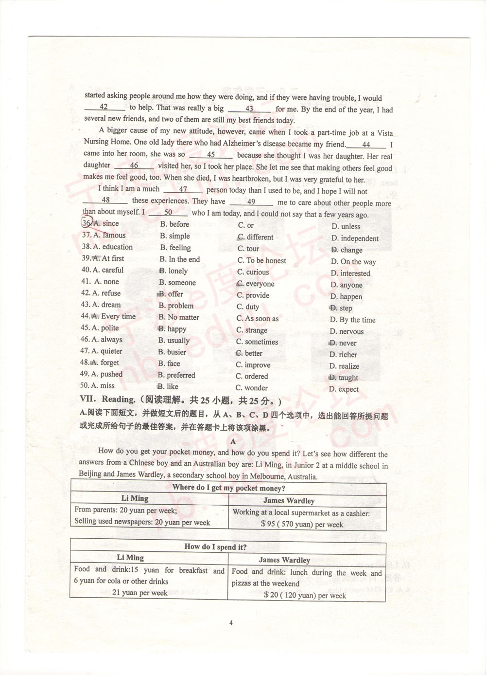 宁外2013学年度第二学期初二英语期末试卷(含参考答案)(4)