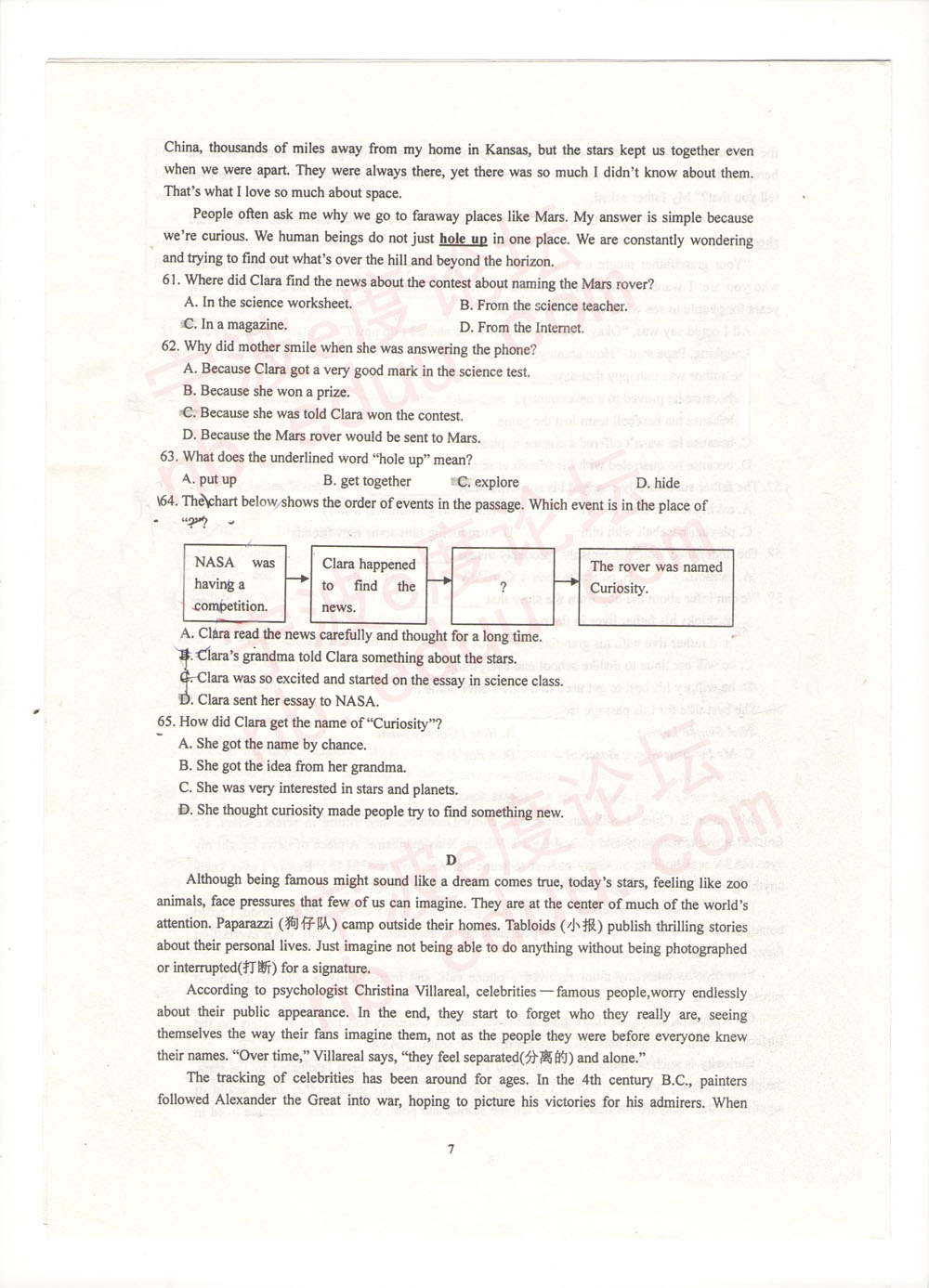 关于【宁外学年度第二学期初二英语期末试卷(含参考答案)(7)】及中考、查分、择校等最新干货资讯,均在家长帮App,还有配套习题及老师免费解答问题,赶快戳我下载 >>>【家长帮App】<<< 相关推荐 2020年中考必备APP「家长帮」免费下载2020年全国中考考试时间汇总2020年全国中考报名时间汇总2020年全国中考大事记2020年中考考前冲刺各科备考全攻略历年全国各省市中考真题及答案历年中考满分作文历年中考录取分数线汇总2020年中考资讯提前看2020年中考政策解读2020年中考政策解读 点击查看更多