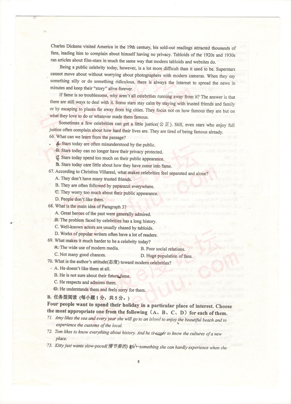 宁外2013学年度第二学期初二英语期末试卷(含参考答案)(8)