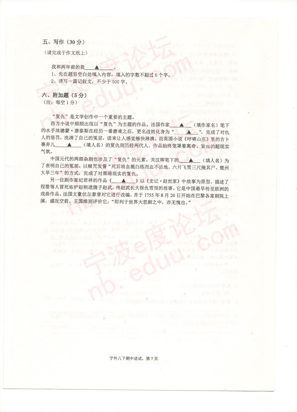 宁外2013学年度第二学期初二语文期中试卷(含参考答案)(7)