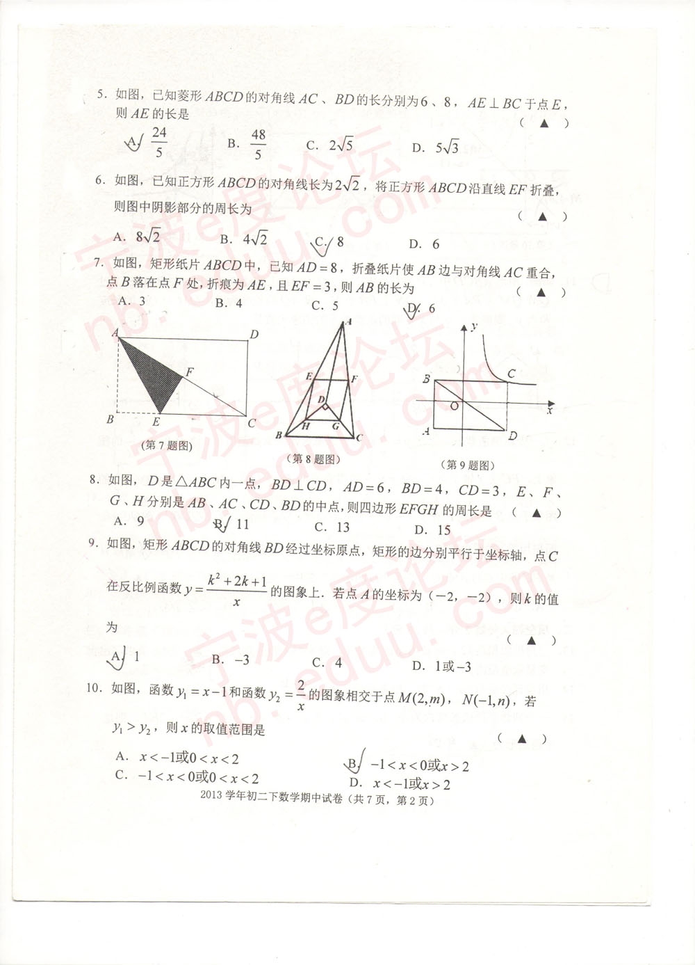 关于【宁外学年度第二学期初二数学期中试卷(含参考答案)(2)】及中考、查分、择校等最新干货资讯,均在家长帮App,还有配套习题及老师免费解答问题,赶快戳我下载 >>>【家长帮App】<<< 相关推荐 2020年中考必备APP「家长帮」免费下载2020年全国中考考试时间汇总2020年全国中考报名时间汇总2020年全国中考大事记2020年中考考前冲刺各科备考全攻略历年全国各省市中考真题及答案历年中考满分作文历年中考录取分数线汇总2020年中考资讯提前看2020年中考政策解读2020年中考政策解读 点击查看更多