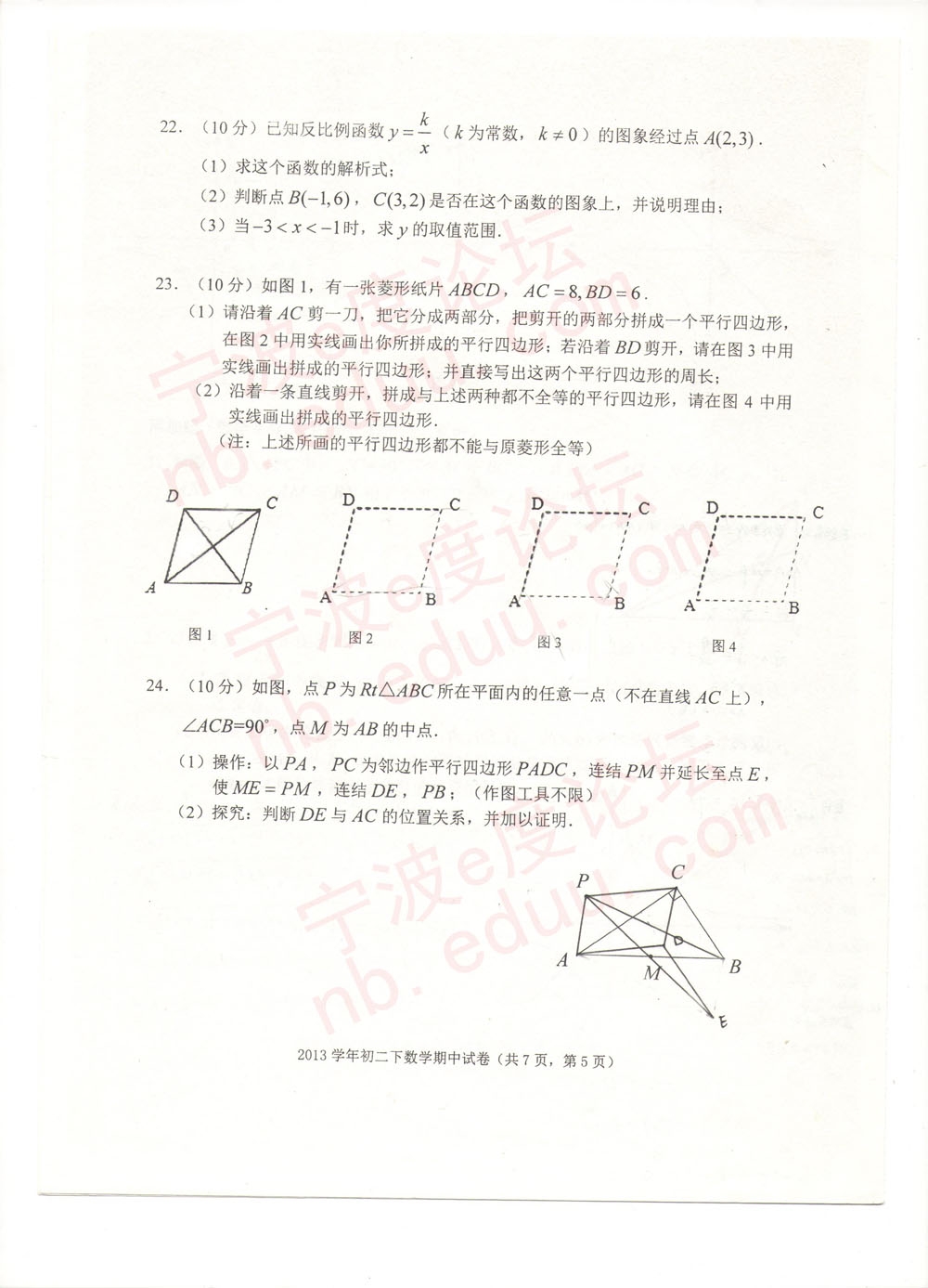 宁外2013学年度第二学期初二数学期中试卷(含参考答案)(5)