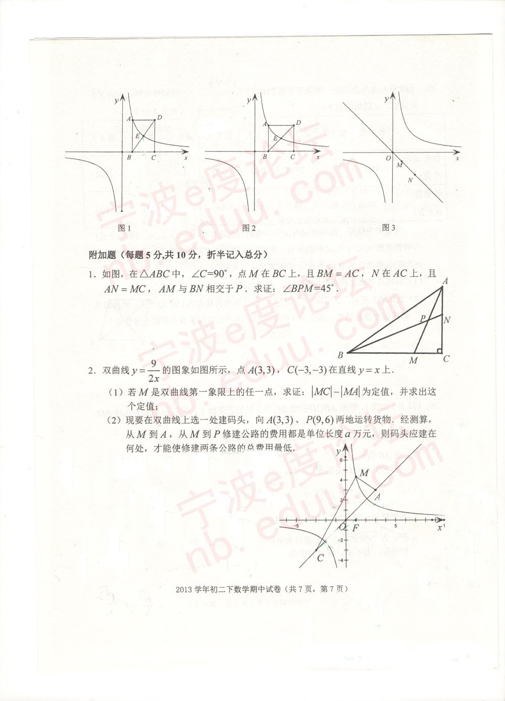 宁外2013学年度第二学期初二数学期中试卷(含参考答案)(7)
