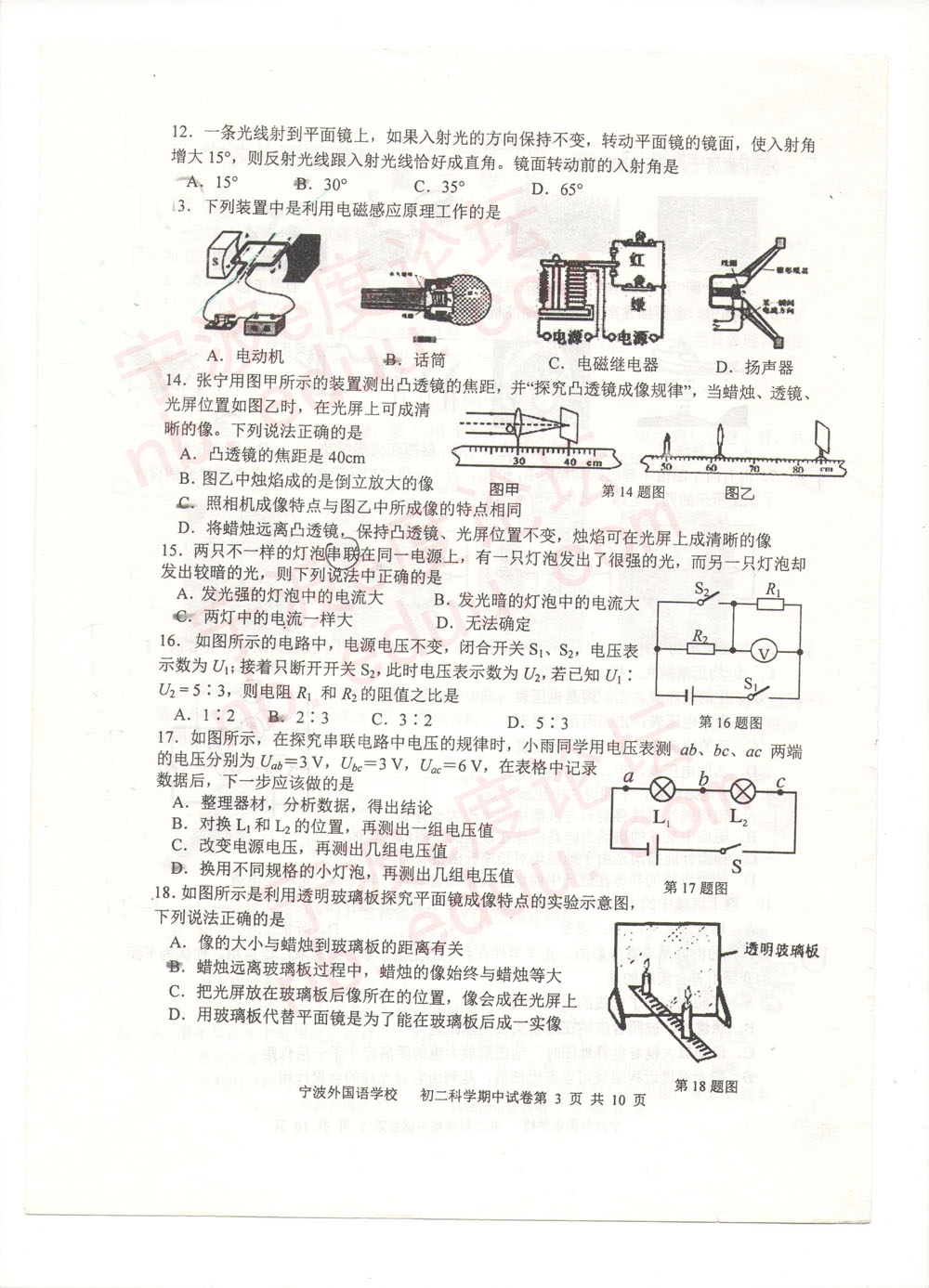 宁外2013学年度第二学期初二科学期中试卷(含参考答案)(3)