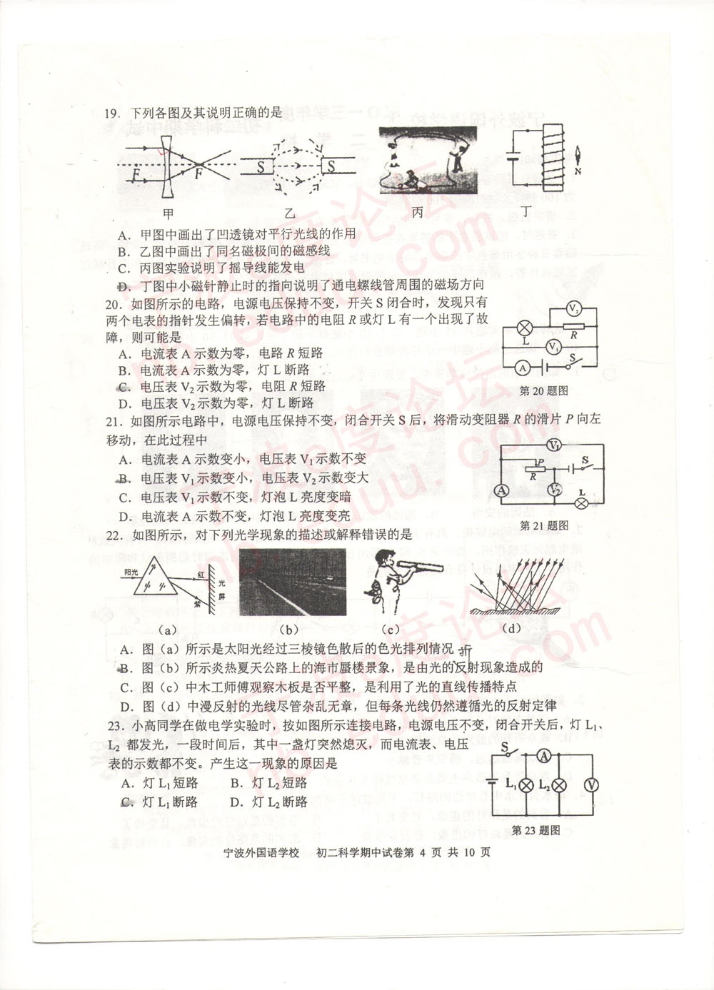 宁外2013学年度第二学期初二科学期中试卷(含参考答案)(4)