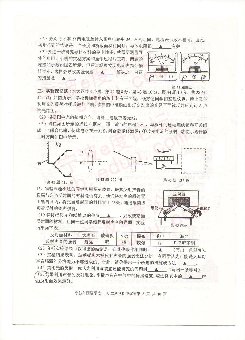 宁外2013学年度第二学期初二科学期中试卷(含参考答案)(8)