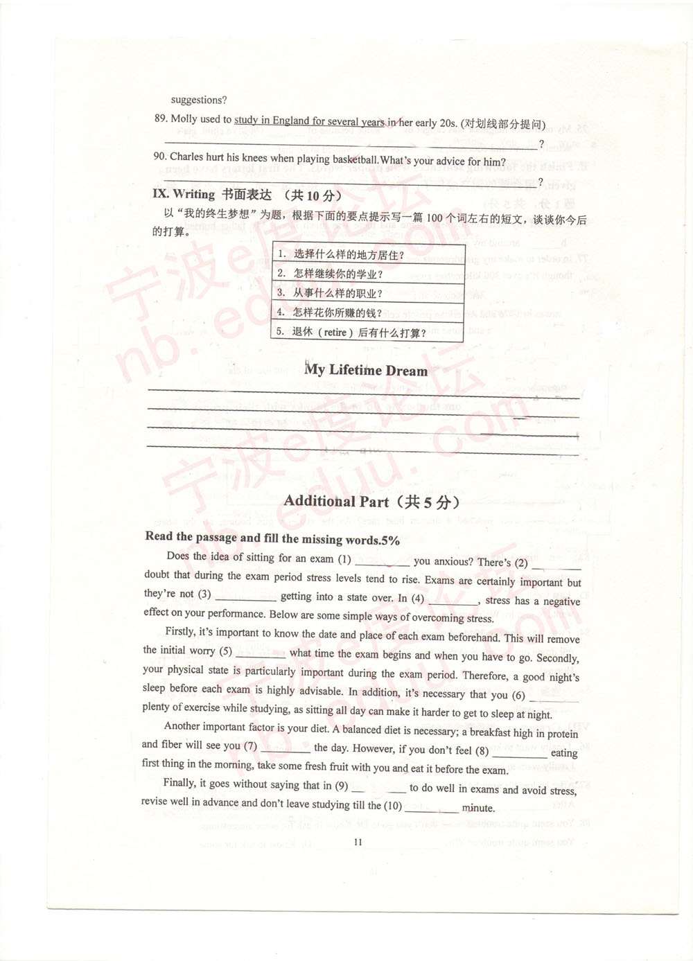 宁外2013学年度第二学期初二英语期中试卷(含参考答案)(11)