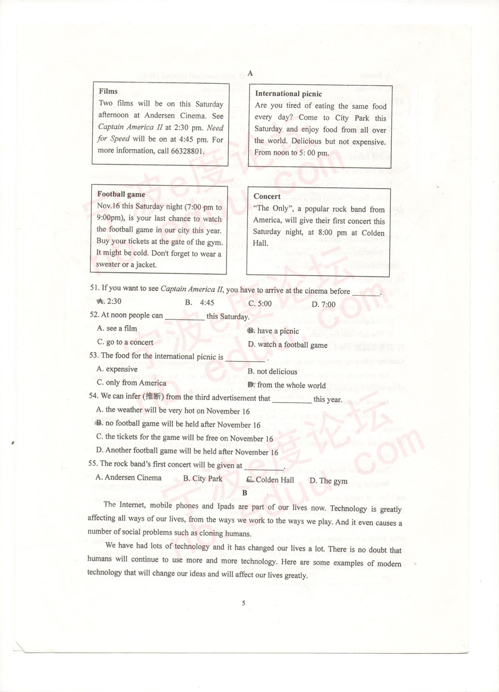 宁外2013学年度第二学期初二英语期中试卷(含参考答案)(5)