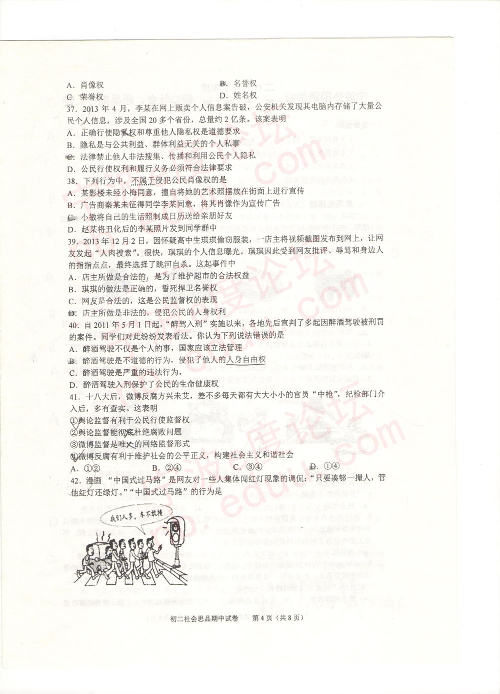 宁外2013学年度第二学期初二社会、思品期中试卷(含参考答案)(4)