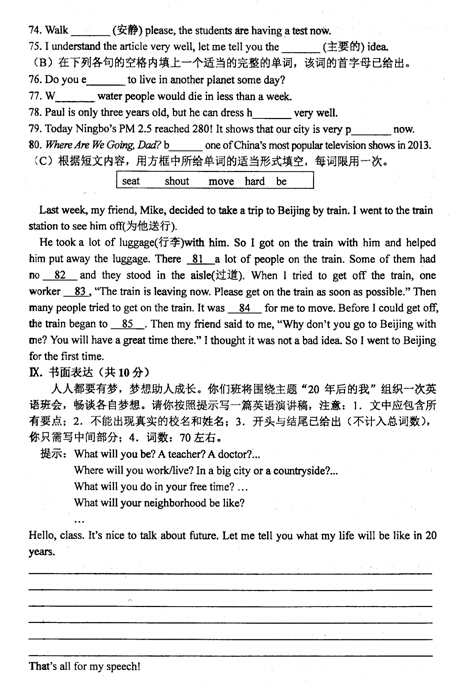 北仑区2013-2014学年上学期八年级期末英语试卷(8)