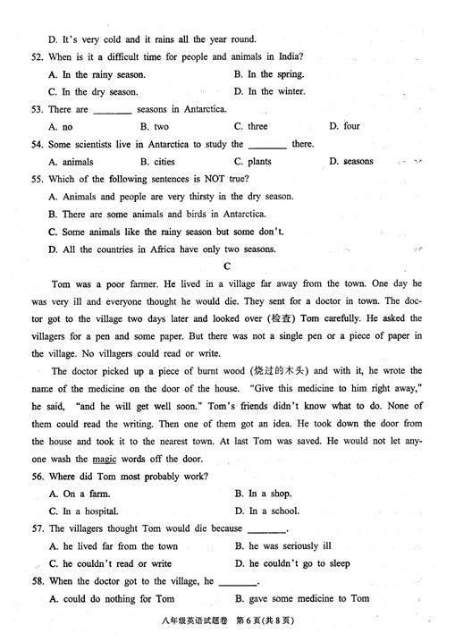 慈溪市2013学年第一学期八年级期末英语试卷(6)
