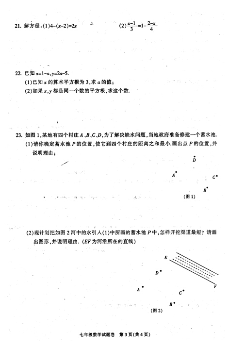 慈溪市2013学年第一学期七年级期末数学试卷(3)