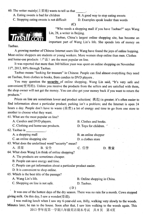 关于【江北、海曙区学年第一学期八年级期末英语试卷(6)】及中考、查分、择校等最新干货资讯,均在家长帮App,还有配套习题及老师免费解答问题,赶快戳我下载 >>>【家长帮App】<<< 相关推荐 2020年中考必备APP「家长帮」免费下载2020年全国中考考试时间汇总2020年全国中考报名时间汇总2020年全国中考大事记2020年中考考前冲刺各科备考全攻略历年全国各省市中考真题及答案历年中考满分作文历年中考录取分数线汇总2020年中考资讯提前看2020年中考政策解读2020年中考政策解读 点击查看更多