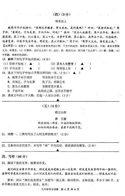 南三县2013-2014学年上学期九年级期末语文试卷(6)
