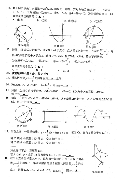 鄞州区2013-2014学年上学期九年级期末数学试卷(2)