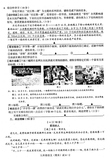 余姚市2013-2014学年上学期九年级期末语文试卷(2)