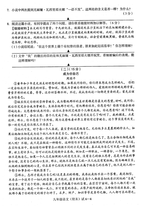 余姚市2013-2014学年上学期九年级期末语文试卷(4)