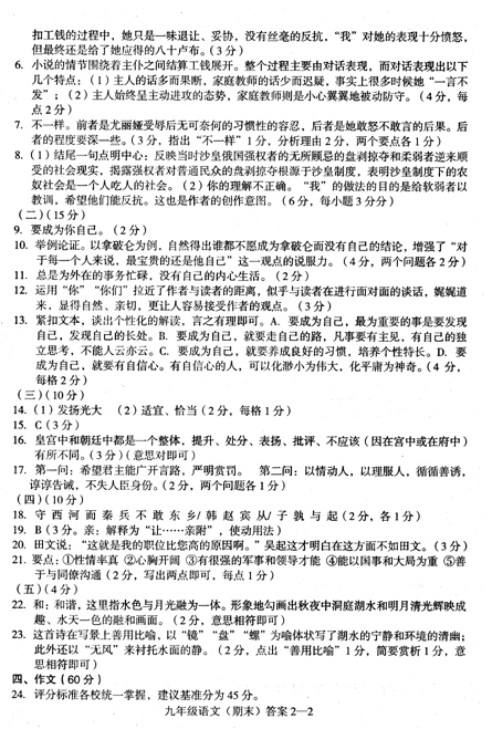 余姚市2013-2014学年上学期九年级期末语文答案(2)
