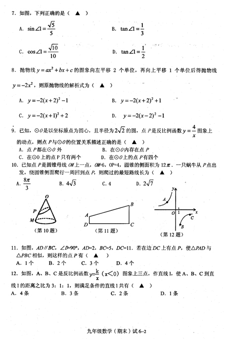余姚市2013-2014学年上学期九年级期末数学试卷(2)