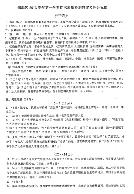 镇海区2013-2014学年上学期九年级期末语文答案