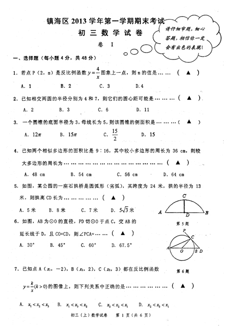镇海区2013-2014学年上学期九年级期末数学试卷