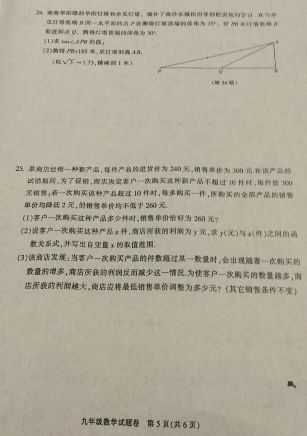 慈溪市2015学年第一学期九年级期末数学试卷(5)