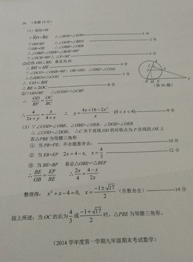 慈溪市2015学年第一学期九年级期末数学答案(5)