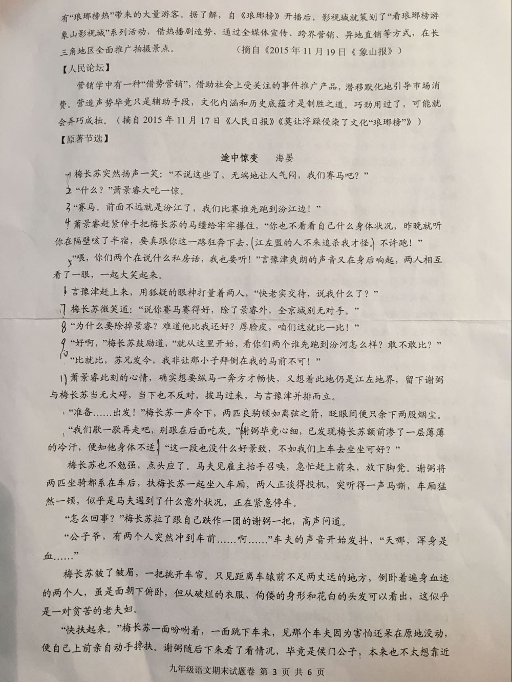 南三县2015学年第一学期九年级期末语文试卷(3)