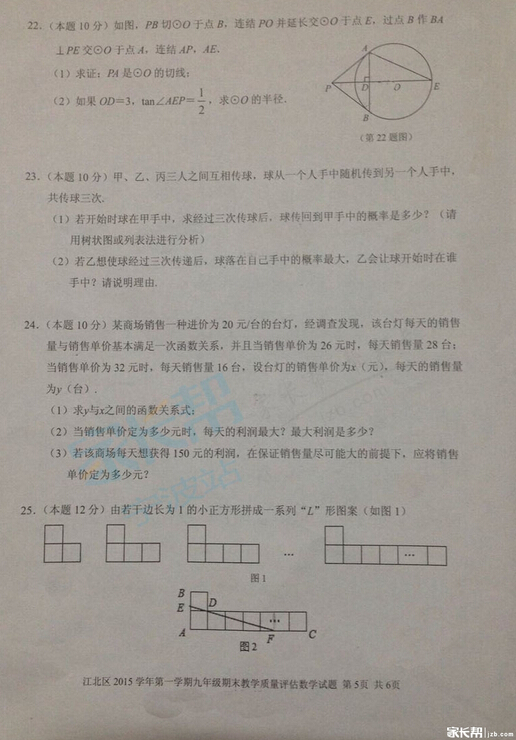 江北区2015学年第一学期九年级期末数学试卷(5)