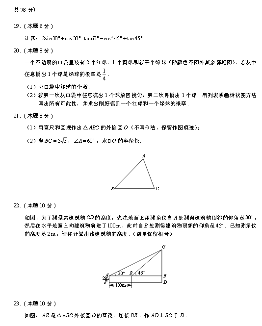 2015年宁波鄞州九年级上册期末考试数学卷(4)