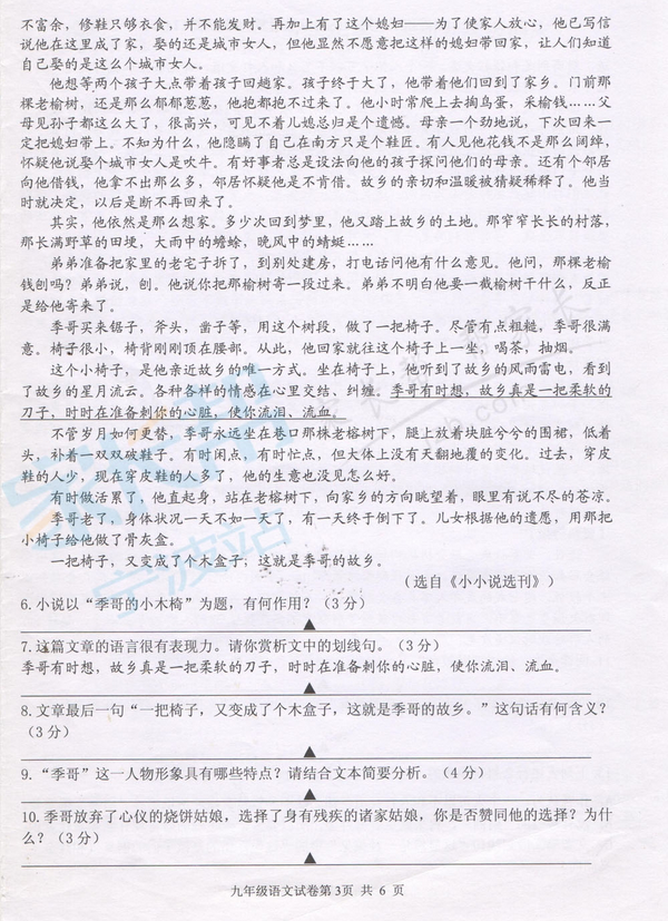 鄞州区2015学年初三第一学期期末语文试卷(3)