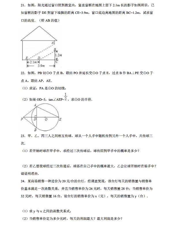 宁波江北区2015-2016学年初三上期末数学试卷(5)