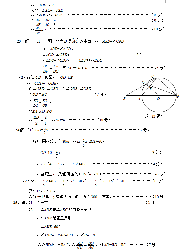 慈溪市2016学年第一学期初三期末数学答案(2)
