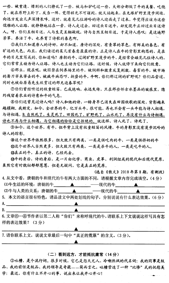2014-2015学年宁波海曙区第一学期九年级期末语文试题(4)