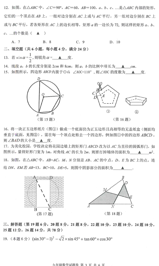 2015-2016学年宁波南三县第一学期九年级期末数学试题(3)