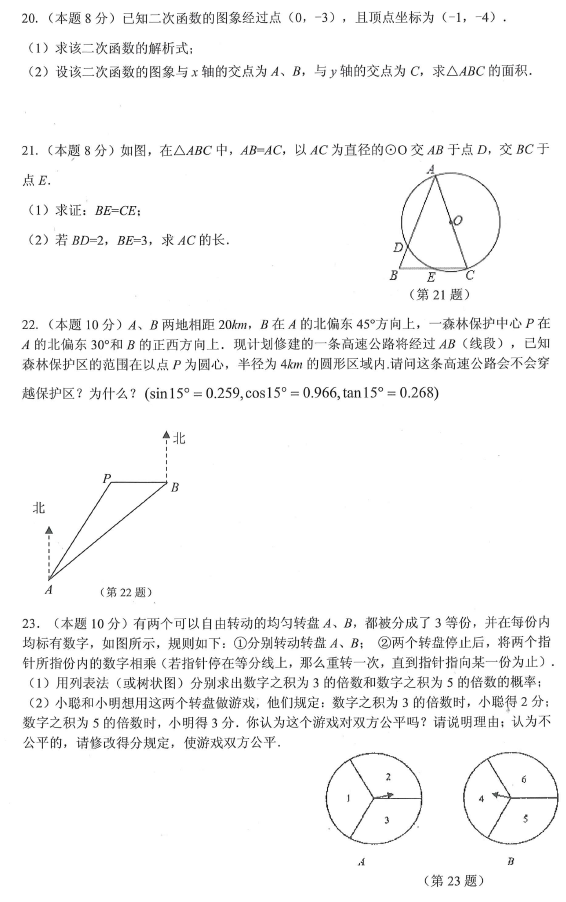 2015-2016学年宁波南三县第一学期九年级期末数学试题(4)