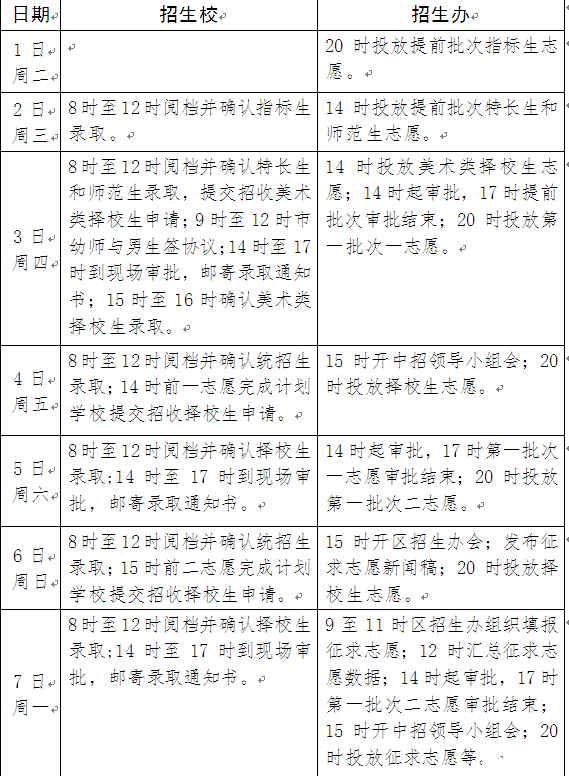 2014南京中考录取工作安排